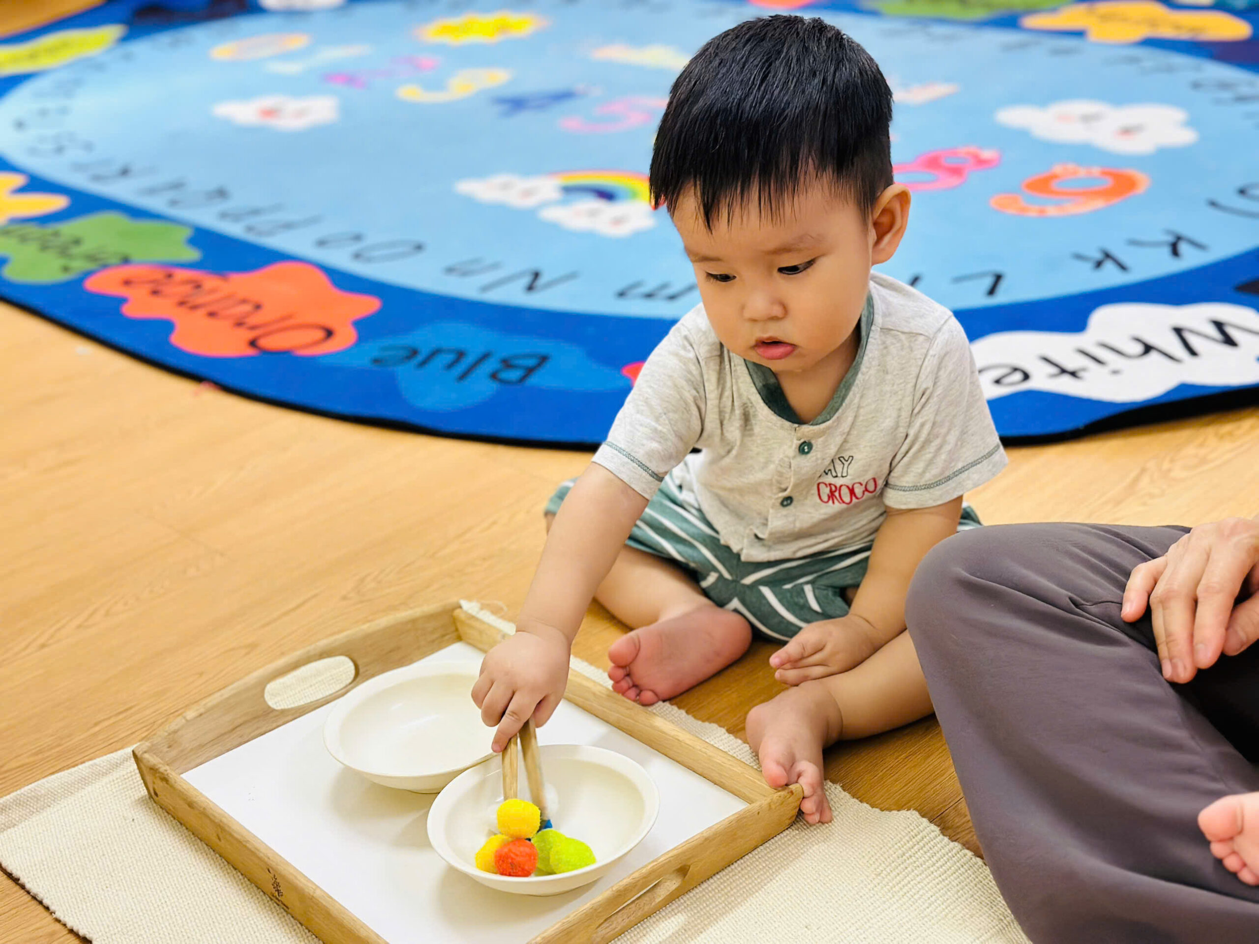 Phát triển đa giác quan: Các bài học Montessori tập trung vào việc kích thích 5 giác quan thông qua các giáo cụ trực quan, âm nhạc nhẹ nhàng và các hoạt động nếm/ngửi thực tế.